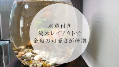 金魚鉢のような小型水槽でも、水草レイアウトは諦めない!現役アクアリウム店員がアヌビアスナナと流木を使った、ピンポンパールの可愛さが倍増する超簡単(3分で完成)なレイアウト方法を解説します。