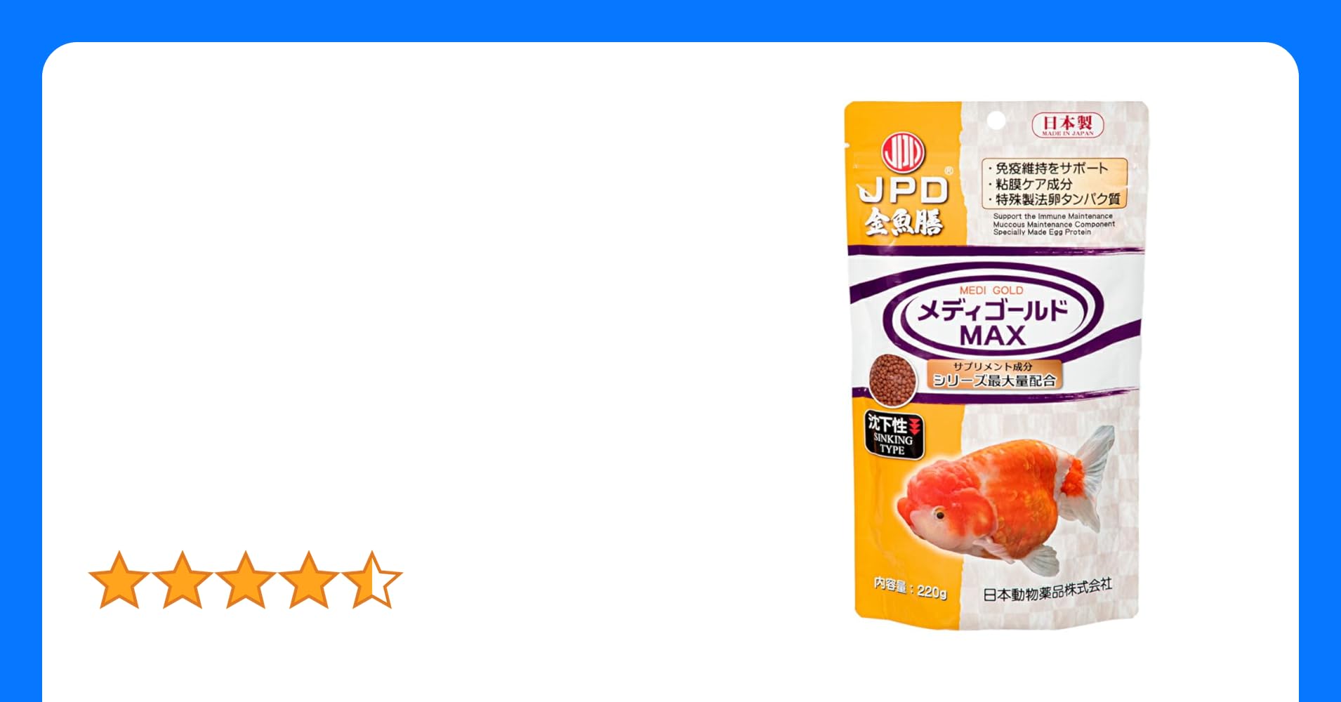 メディゴールドMAXの特徴について詳細に書いた記事が、【初心者必見】もう失敗しない!お迎え金魚を健康に育てるためのマル秘テクニックをご覧ください。