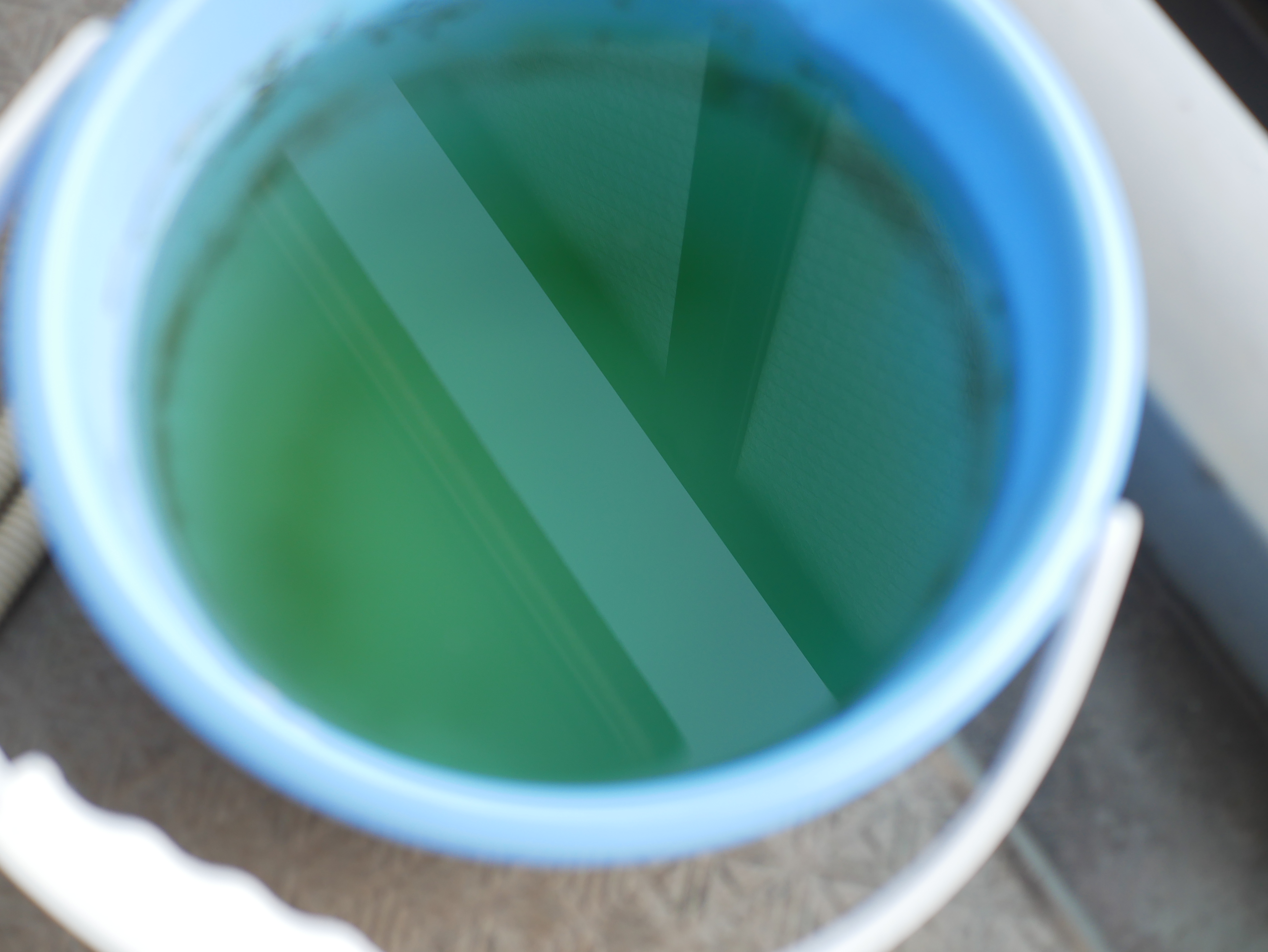 グリーンウォーターは、EZグリーンをバケツに規定量入れて陽当りのいいところに1週間放置するだけで出来上がりますよ。